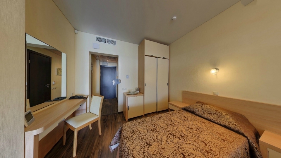 Оснащение номера: две односпальной кровати, кресло-кровать, фригобар, телевизор, сейф, фен, набор посуды: 2 стакана, ваза для фруктов, поднос, wi-fi