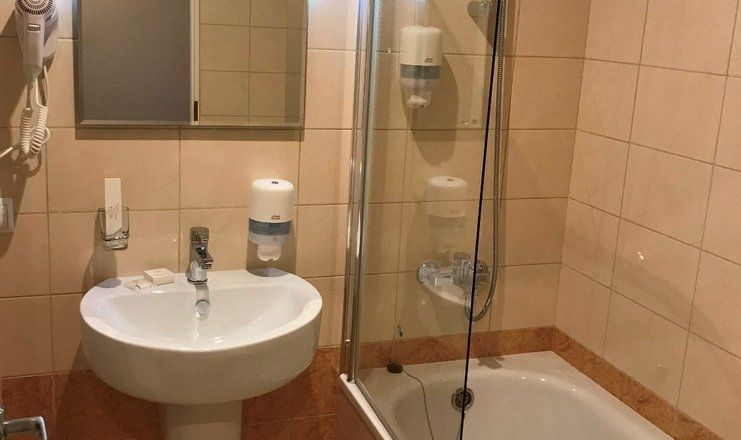 Санузел: ванна или душ, раковина, унитаз, фен, туалетные принадлежности