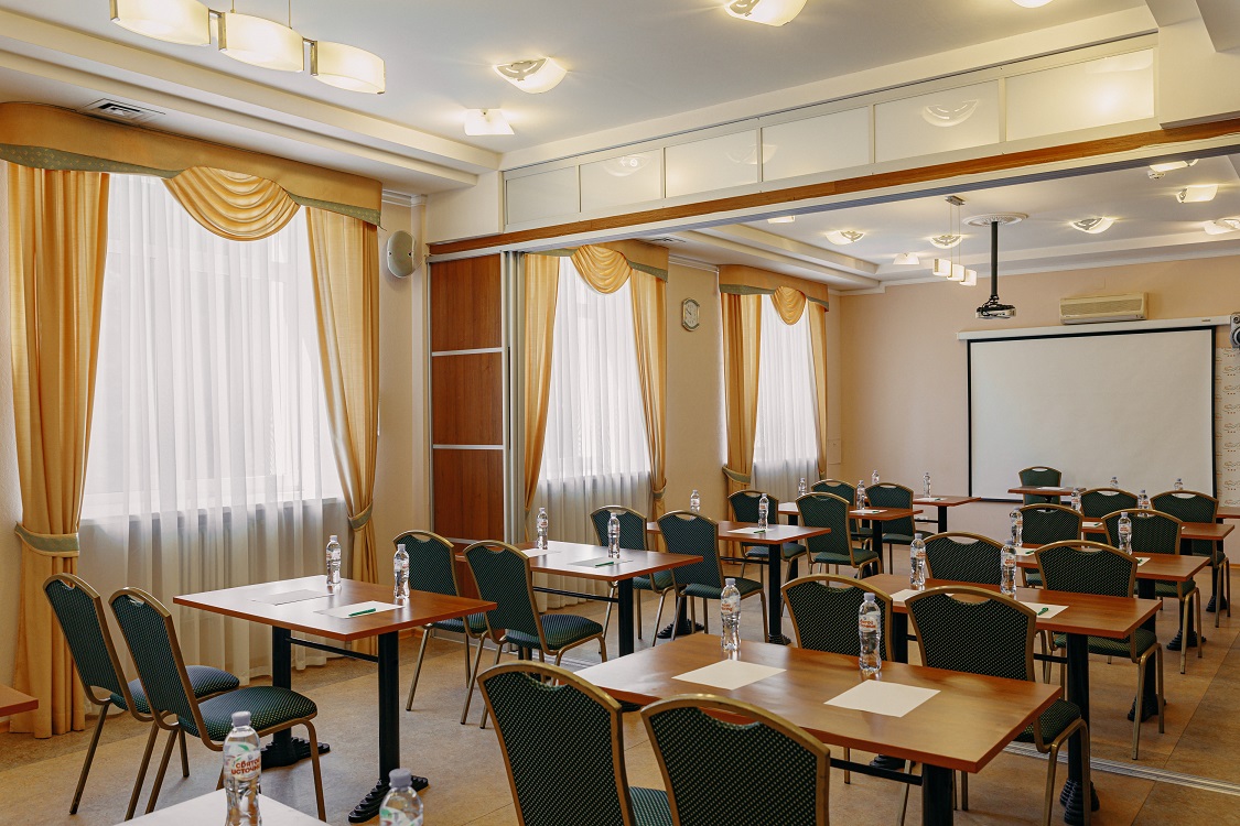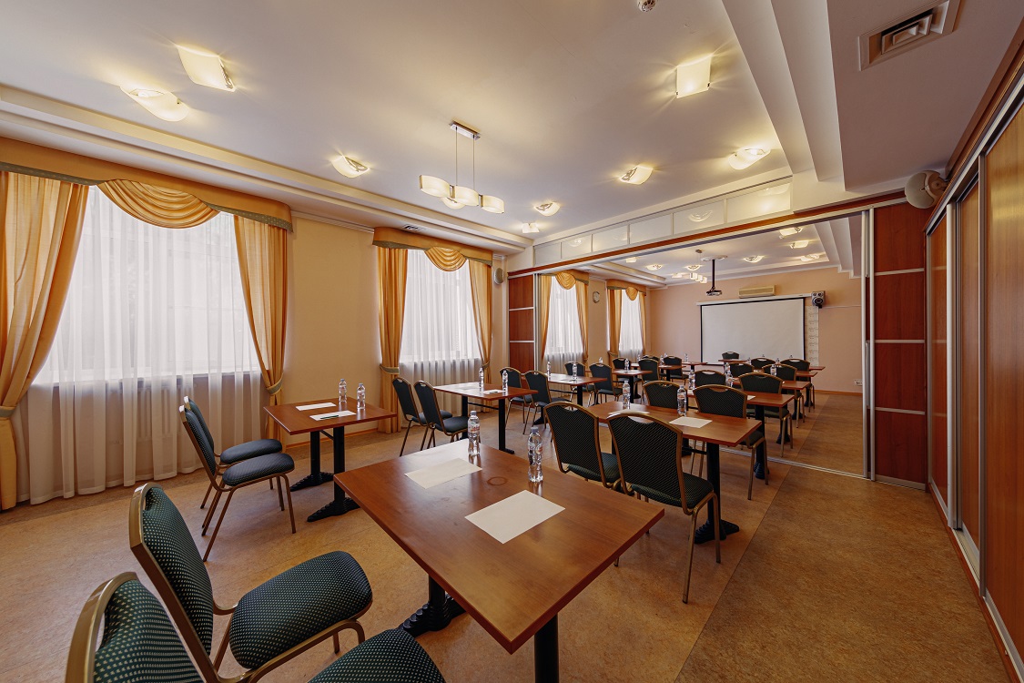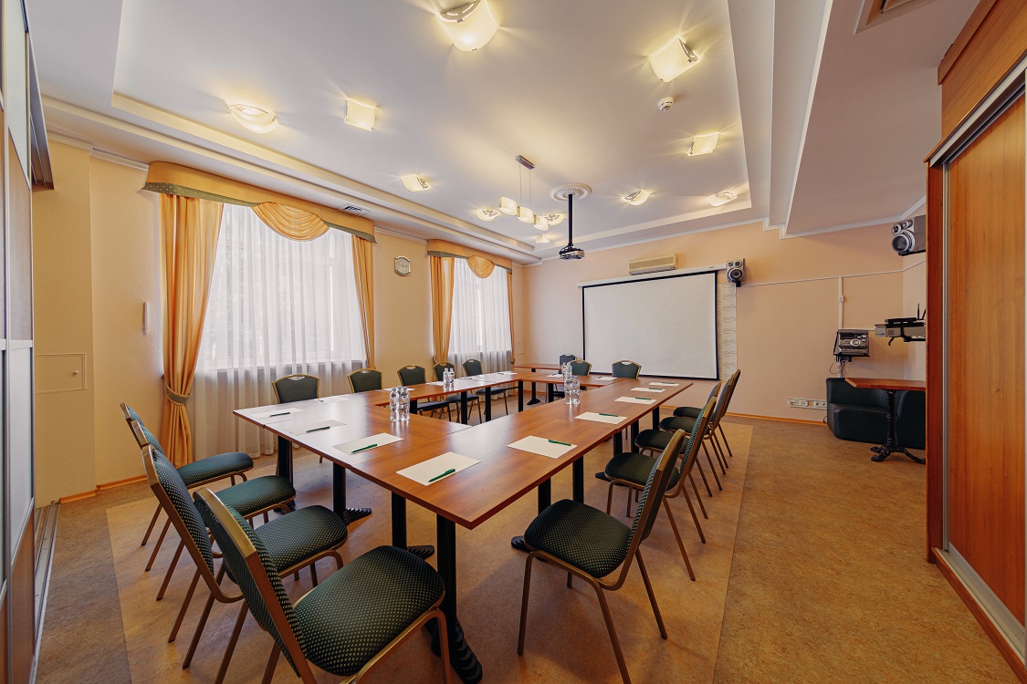 Малый конференц-зал расположен на втором этаже гостиничного комплекса «Тверь Парк Отель» и оборудован всем необходимым для проведения конференций, семинаров, презентаций, тренингов и деловых встреч. Местоположение гостиничного комплекса вдали от городского шума, в березовой роще на берегу Волги, позволяет эффективно сочетать деловое общение и отдых.
