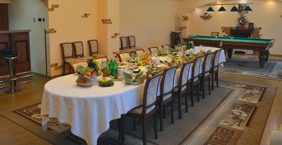 Санаторий старается максимально удовлетворять любые прихоти заказчиков, а выгодные и гибкие расценки на банкетные блюда порадуют всех без исключения.