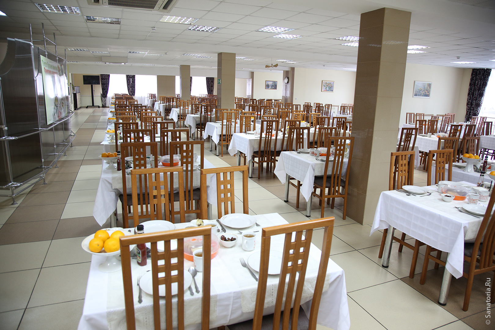 Питание в столовой санатория трехразовое диетическое по системе "меню-заказ". Меню составляется индивидуально, с учетом курса лечения и рекомендаций врача.
