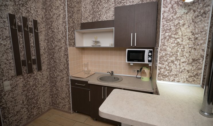 В номере: Прихожая: шкаф-купе, сейф, зеркало, вешалка для верхней одежды. Миникухня: кухонный уголок, микроволновая печь, набор посуды, холодильник.