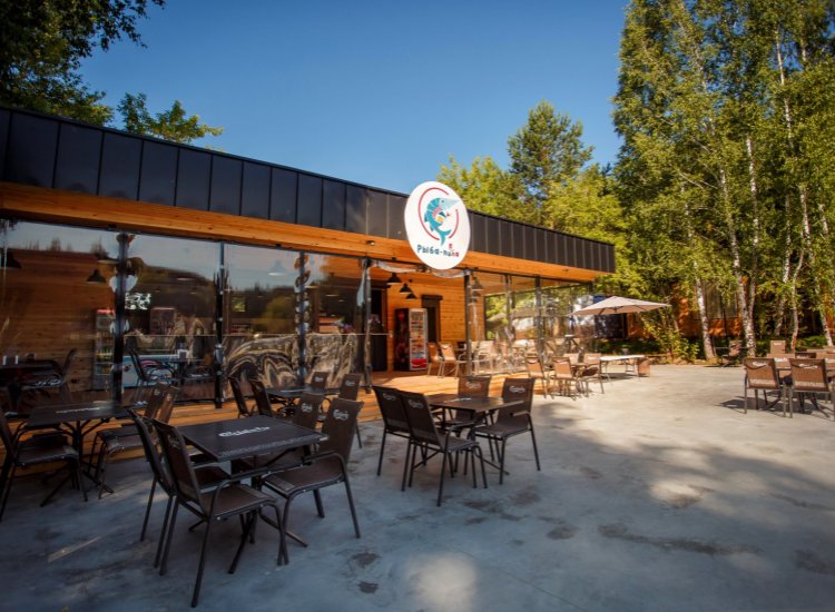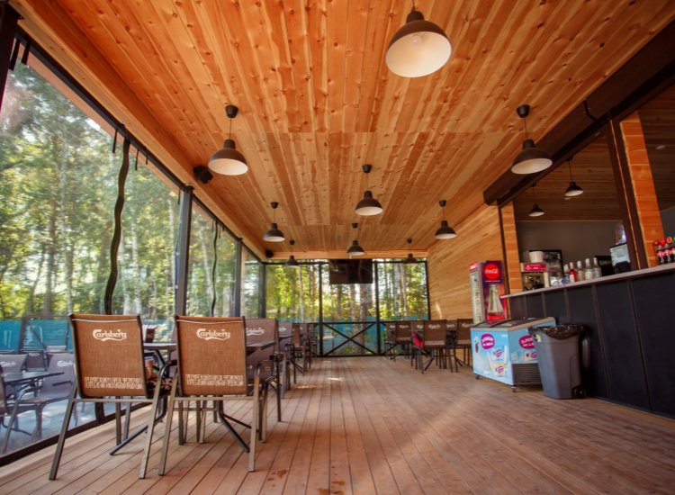 На территории также работает «Рыба-пила и ела» — новый летний бар. Для гостей представлен широкий ассортимент блюд: вкуснейшее домашнее мороженое, салаты и закуски, сэндвичи, пицца и прохладительные напитки. В летний бар можно без посещения аква-комплекса.