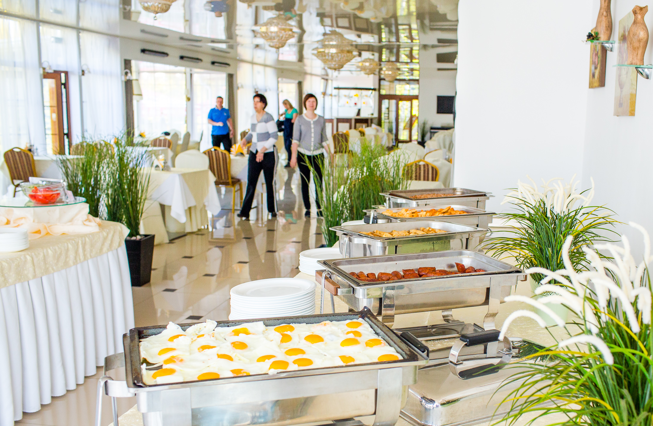 В санатории «Волна» шеф-повара накормят отдыхающих вкусно и сбалансированно. Приемы пищи могут проходить как в одном из залов основного ресторана, так и в летнем кафе или в баре по меню ресторана. Основной ресторан состоит из белого, синего, красного и каминного залов, каждый отдыхающий сможет самостоятельно выбрать то место, где ему будет максимально комфортно. Питание в пансионате построено по системам «шведский стол» и комплексное меню в межсезонье три раза в день. Хоть меню ресторана не совсем большое, но оно способно удивить как гурмана, так и любителя домашней пищи. Все блюда приготовлены высококвалифицированными шеф-поварами только из качественных, свежих и натуральных продуктов. Это и вкусные супы, гарниры, блюда из мяса и птицы, каши, салаты, закуски, свежие овощи и фрукты, напитки, десерты и ароматная выпечка.